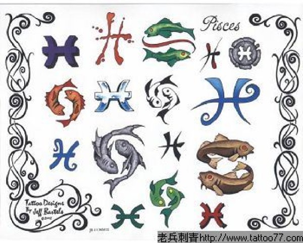 双鱼座纹身手稿_45张十二星座之双鱼手稿纹身图案