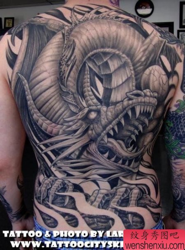 欧美满背龙纹身作品图片