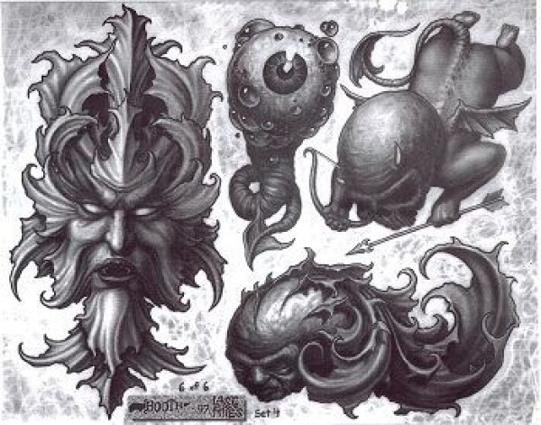 双鱼座纹身手稿_45张十二星座之双鱼手稿纹身图案