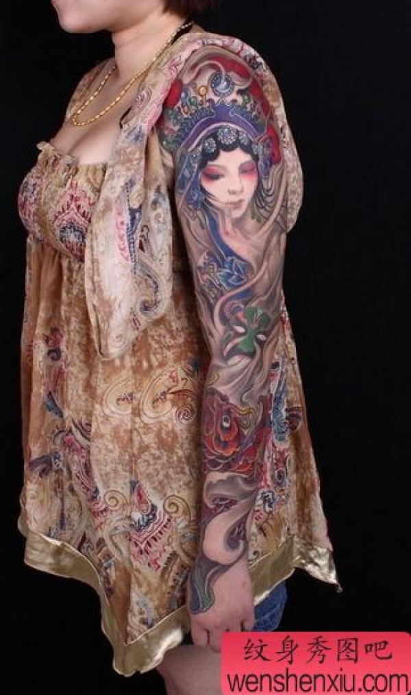 美女花旦鲤鱼花臂纹身图案纹身图片