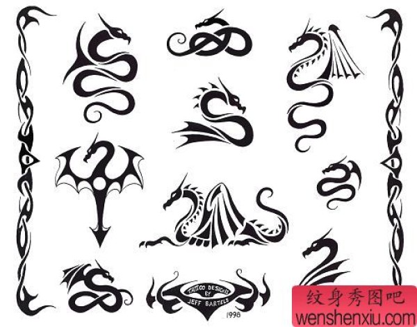 龙纹身手稿_一组老传统黑灰龙手稿纹身图案