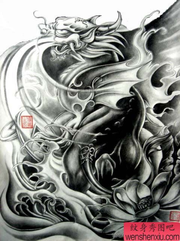 龙纹身手稿_一组老传统黑灰龙手稿纹身图案