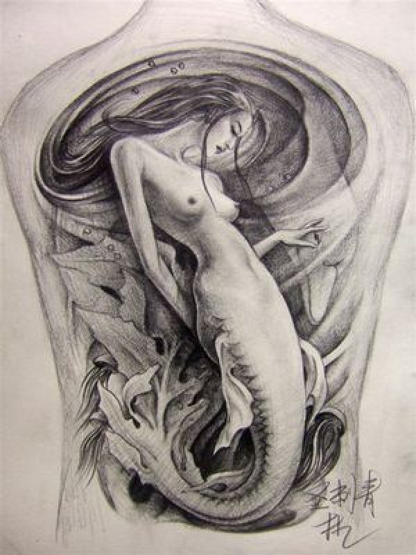 满背美人鱼纹身作品图片
