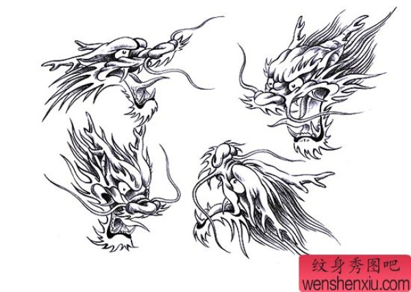 龙纹身手稿_一组老传统黑灰龙手稿纹身图案