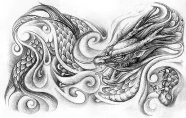 龙纹身手稿_一组老传统黑灰龙手稿纹身图案