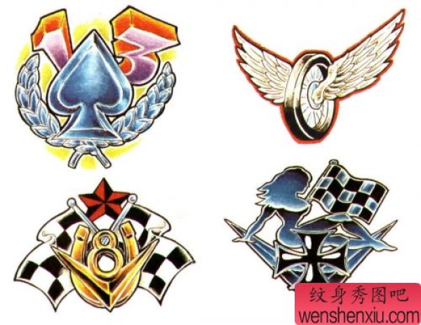 翅膀五角星旗帜骷髅蜘蛛网纹身作品图片
