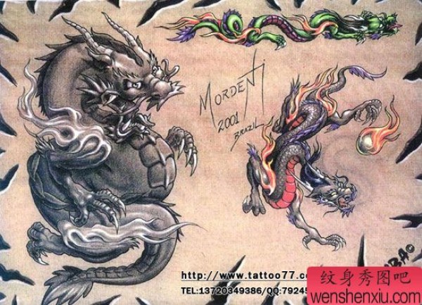 纹身培训学习学校分享一套龙纹身作品图片(tattoo)