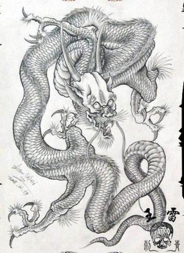 龙纹身手稿_一组老传统黑灰龙手稿纹身图案