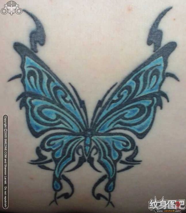 分享一款腰部时尚性感的蝶恋花纹身图案_腰部纹身图案大全_纹身图吧