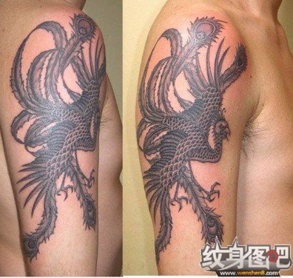 肩膀头子上的神兽凤凰纹身图