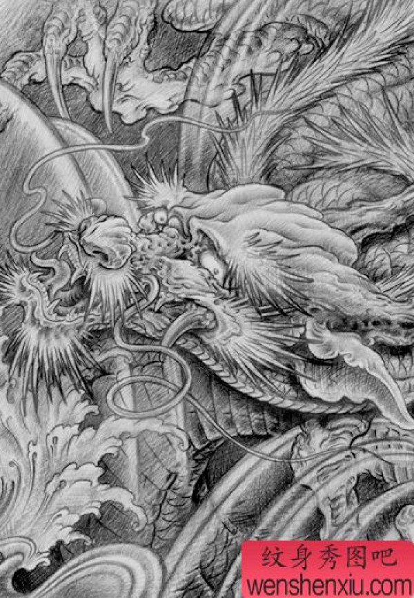 龙纹身手稿_一组老传统黑灰龙手稿纹身图案