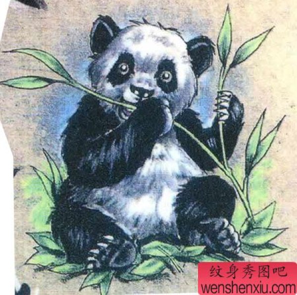 国宝熊猫吃竹子可爱的纹身作品图片(tattoo)