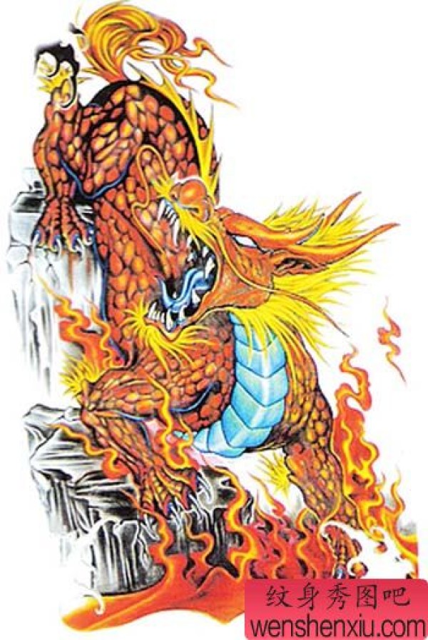 龙纹身手稿_一组老传统黑灰龙手稿纹身图案