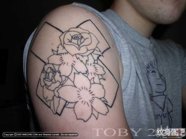 女生肩花纹身_15张女性双肩对称的肩花纹身图案作品图片