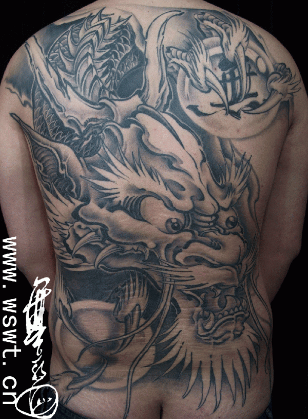 龙纹身手稿_一组老传统黑灰龙手稿纹身图案