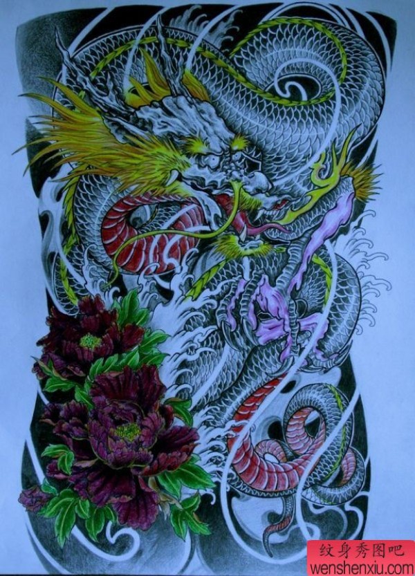龙纹身手稿_一组老传统黑灰龙手稿纹身图案