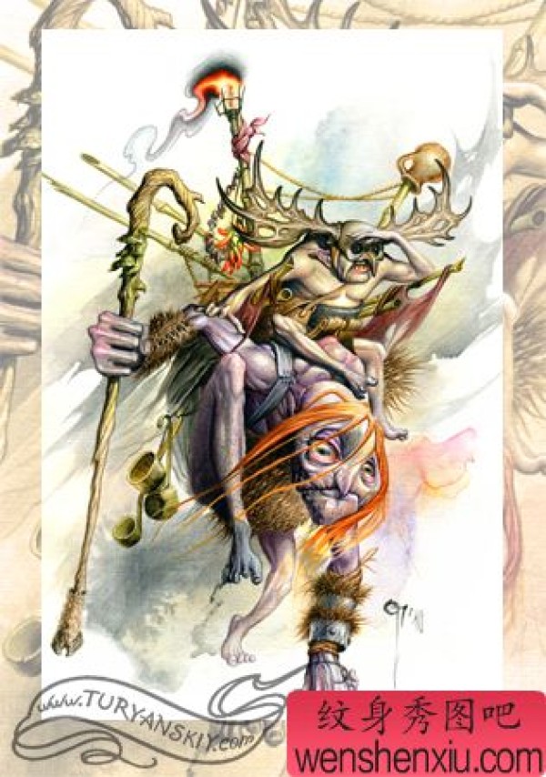 能面万媚纹身手稿_52张日式能剧面具纹身手稿图案素材欣赏