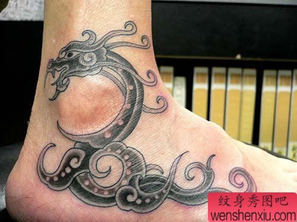 龙纹身手稿_一组老传统黑灰龙手稿纹身图案