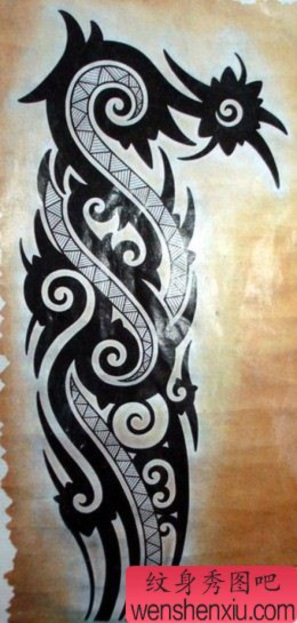 龙纹身手稿_一组老传统黑灰龙手稿纹身图案
