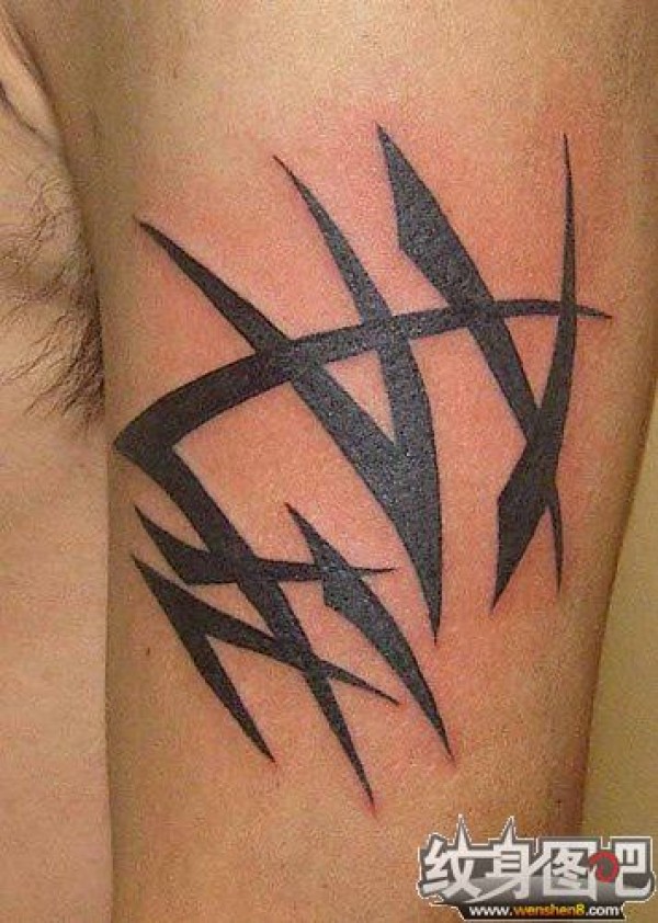手臂上边几条黑色的图腾纹身,貌似某种字符的组合