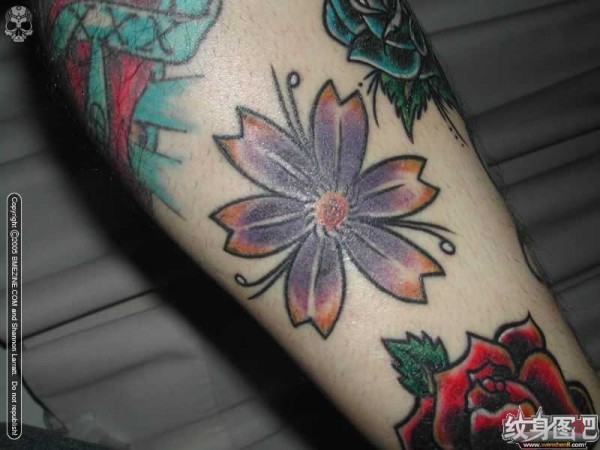 传统鲤鱼花小腿纹身_腿部纹身图案大全_纹身图吧