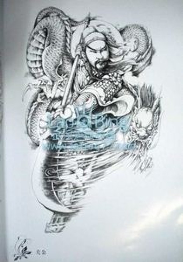 关公降龙纹身作品图片