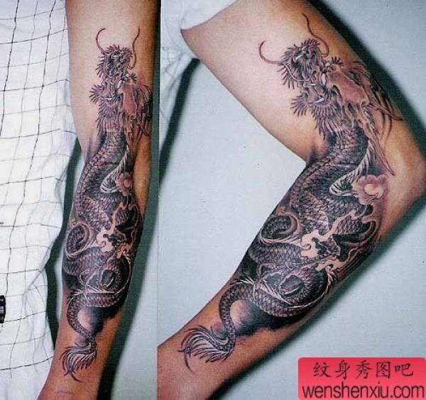 龙纹身手稿_一组老传统黑灰龙手稿纹身图案