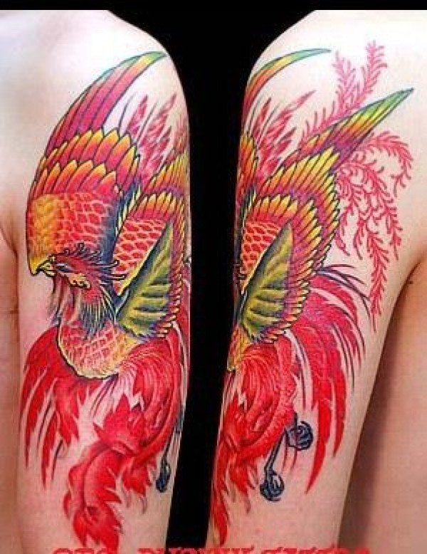 大臂凤凰纹身作品图片