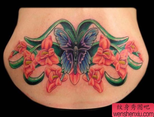 后腰花蝴蝶纹身图案