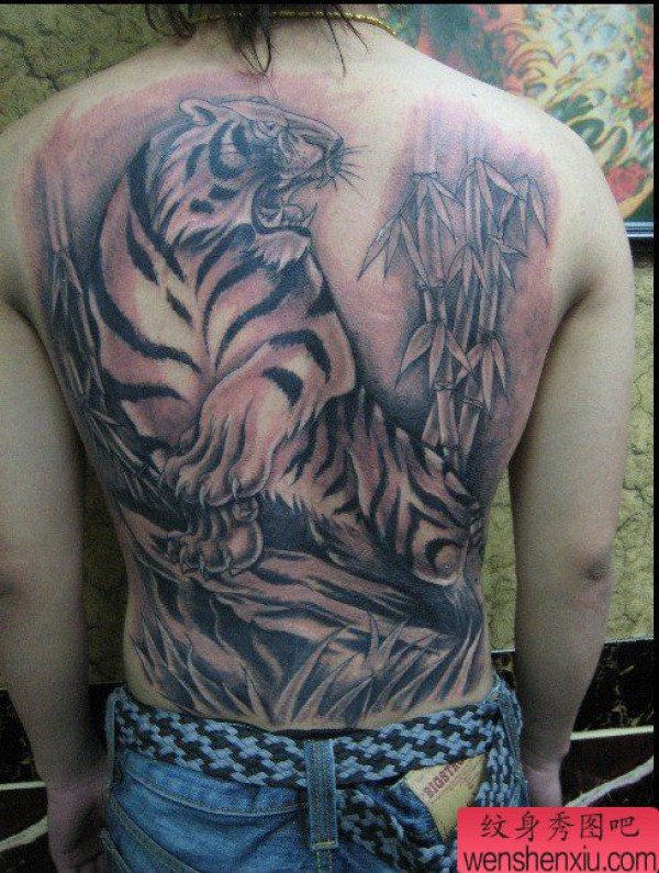 满背老虎纹身作品图片