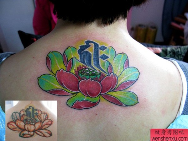 后背莲花梵文纹身图案
