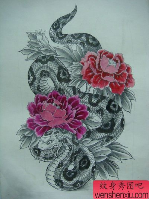 龙纹身手稿_一组老传统黑灰龙手稿纹身图案