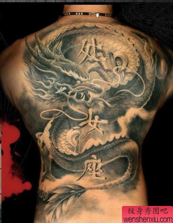 龙纹身手稿_一组老传统黑灰龙手稿纹身图案