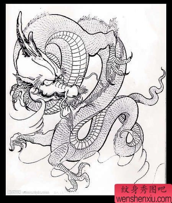 龙纹身手稿_一组老传统黑灰龙手稿纹身图案