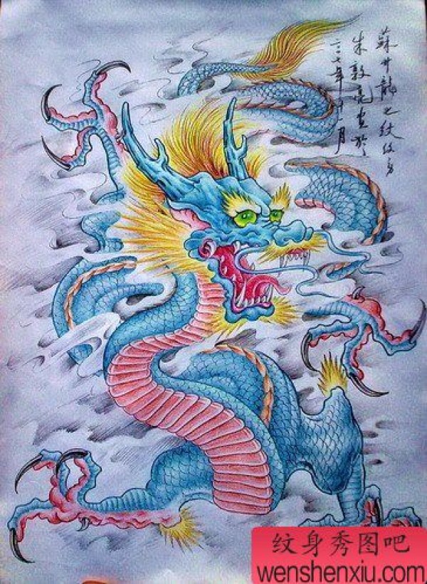 龙纹身手稿_一组老传统黑灰龙手稿纹身图案