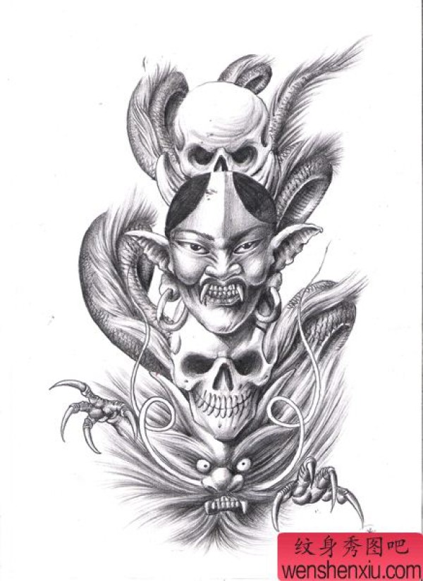 能面万媚纹身手稿_52张日式能剧面具纹身手稿图案素材欣赏