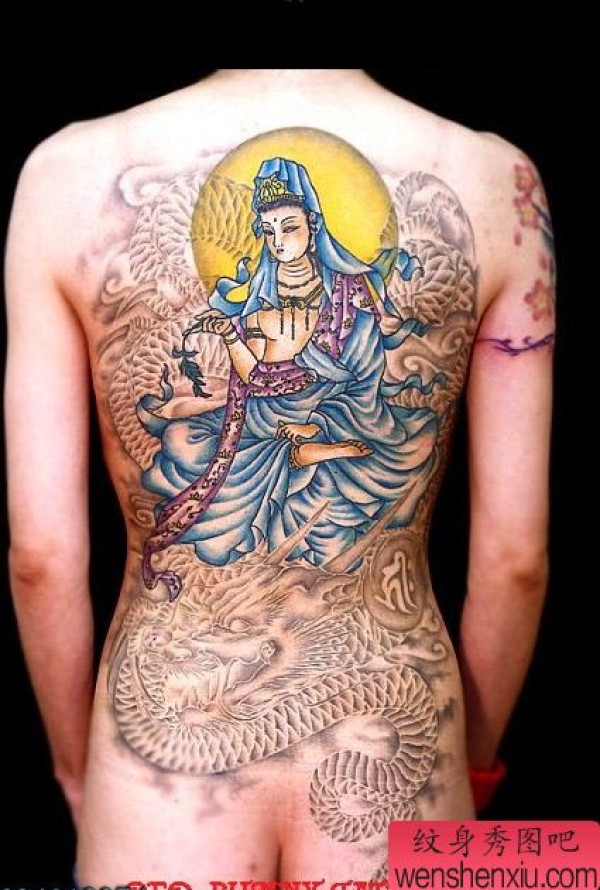 满背观音龙纹身作品图片