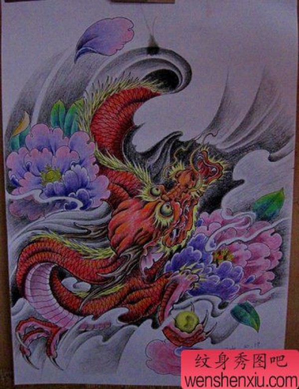 龙纹身手稿_一组老传统黑灰龙手稿纹身图案
