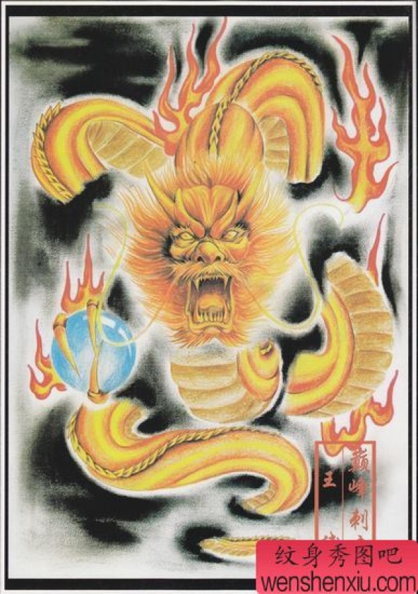 龙纹身手稿_一组老传统黑灰龙手稿纹身图案