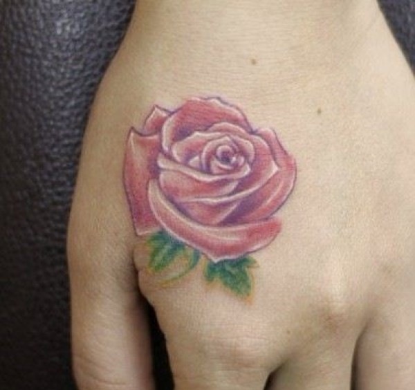 手背彩色玫瑰纹身图案纹身图片