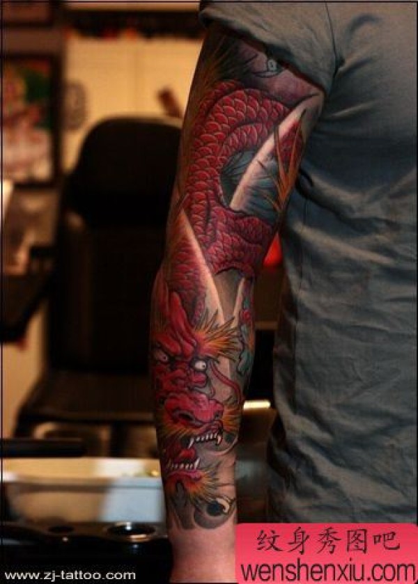 经典手臂彩色龙纹身作品图片
