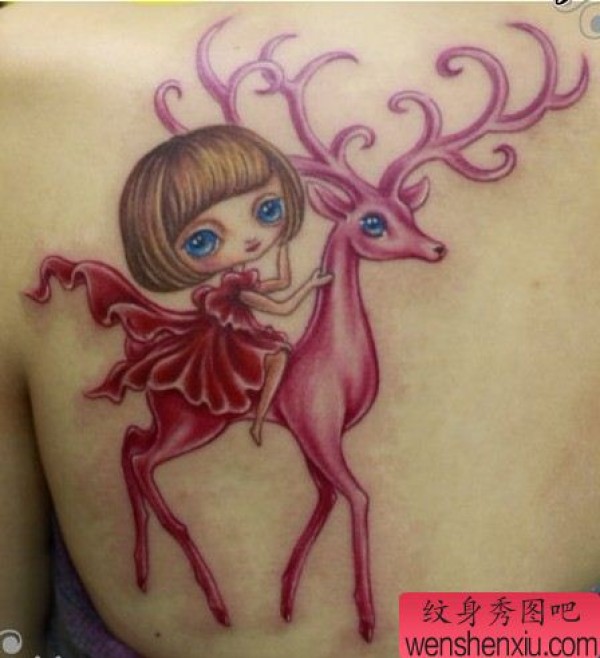 肩部卡通娃娃小鹿纹身图案纹身图片