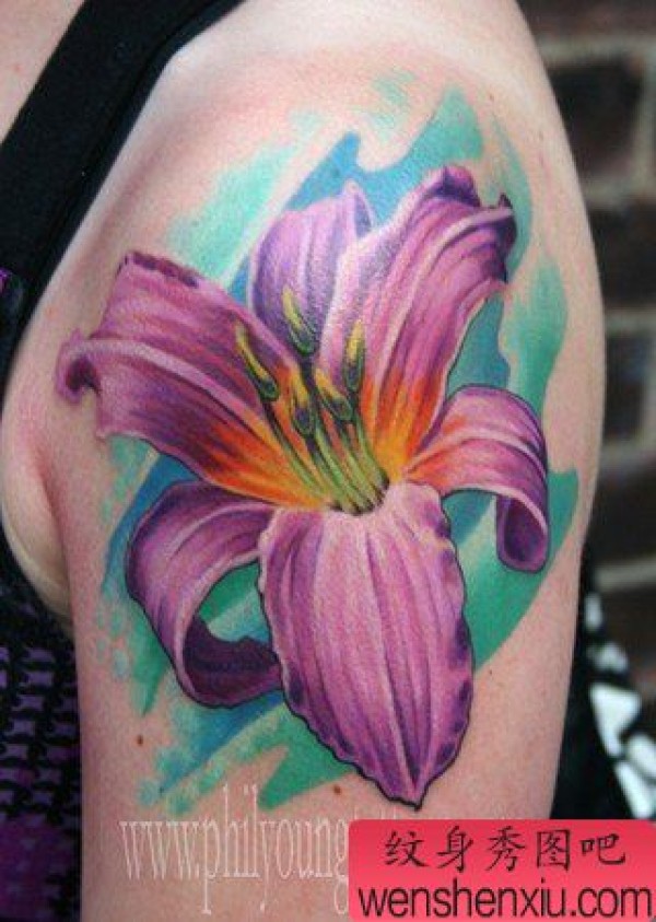 手臂百合花纹身作品图片