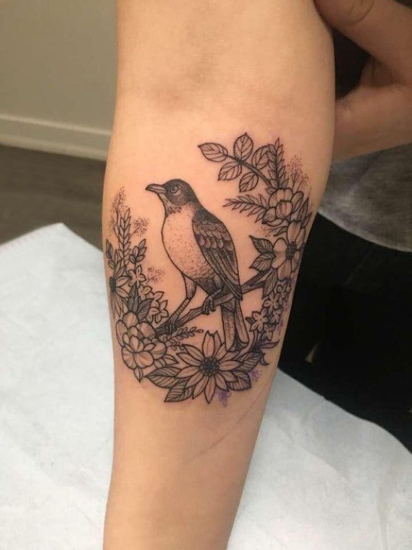 手臂纹身素材 女生手臂上花朵和小鸟纹身图片