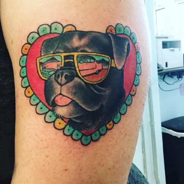 手臂纹身素材 男生手臂上心形和小狗纹身图片