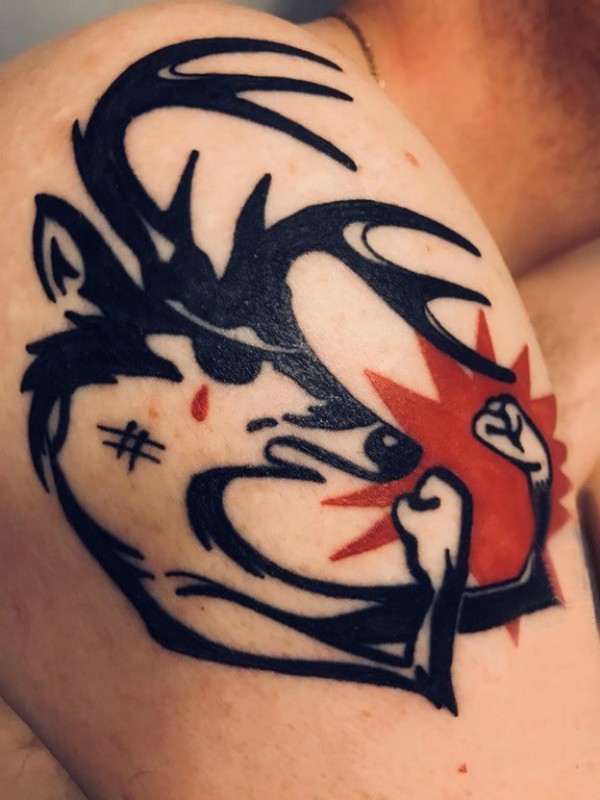 麋鹿纹身图片 男生手臂上麋鹿纹身图片