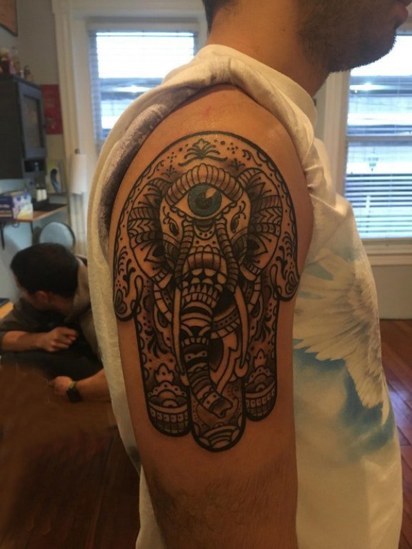 大臂纹身图 男生大臂上彩色的大象纹身图片