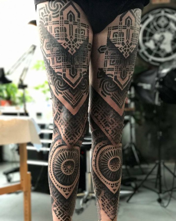 纹身腿部 女生腿部黑色的几何纹身图片
