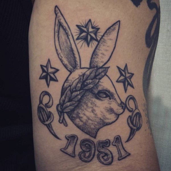 小兔子纹身:黑灰色的9张小兔子纹身作品9张