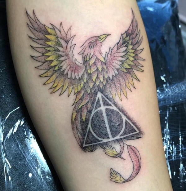 纹身火凤凰 男生手臂上三角形和凤凰纹身图片